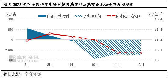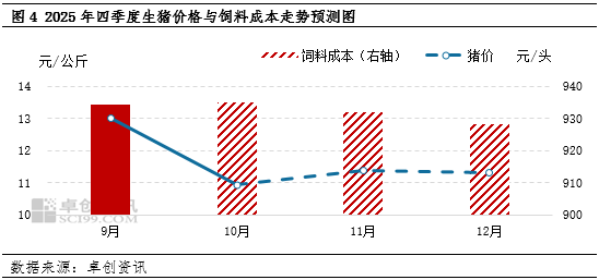 从生猪行情及成本情况来看,卓创资讯预计四季度生猪自繁自养模式或仍然处于亏损状态,四季度盈利均值或为239.42元/头,与三季度相比下降308.12元/头,同比2024年四季度跌652.33元/头。