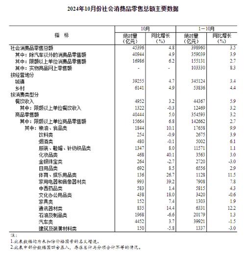 此外,以旧换新政策持续发力见效。于建勋指出,各地区各部门深入实施消费品以旧换新政策,相关商品零售实现较快增长。前三季度,限额以上单位家具类同比增长21.3%,延续今年以来快速增长态势;家用电器和音像器材类、文化办公用品类商品零售额分别增长25.3%、19.9%,增速比上年同期、上年全年明显加快;通讯器材类商品零售额增长20.5%,其中9月份增速比8月份明显加快。前三季度,限额以上单位汽车类零售额增长0.6%,三季度汽车零售逐月改善。