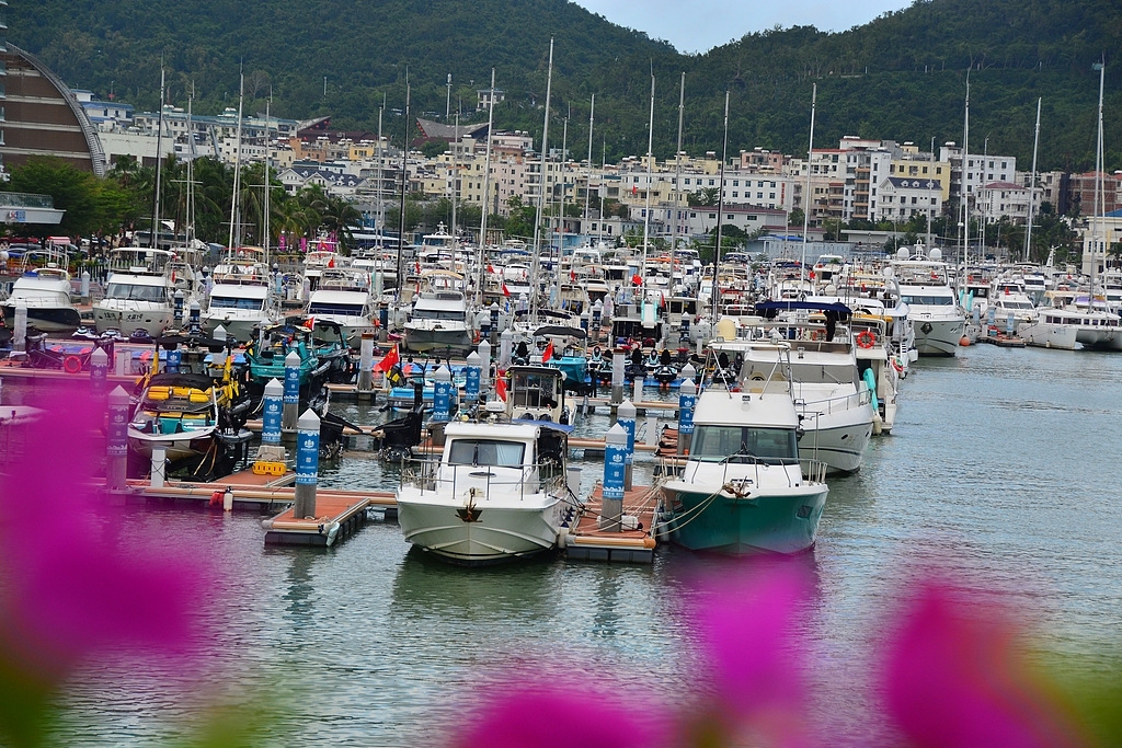 10月18日,海南三亚,受今年第24号台风“风神”影响,出海观光游艇返回三亚港避风。
