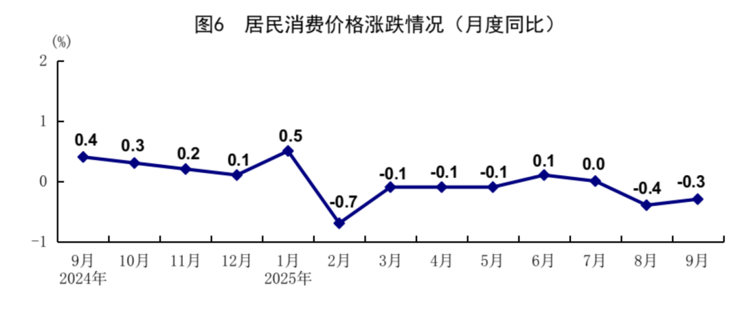 ◆ 前三季度,全国居民消费价格(CPI)同比下降0.1%