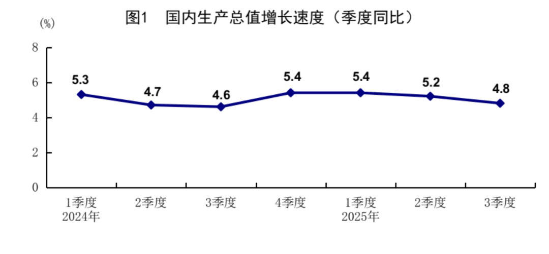 2024年各季度及2025年一季度、二季度、三季度GDP环比增速分别为1.3%、1.0%、1.5%、1.5%、1.2%、1.0%和1.1%。