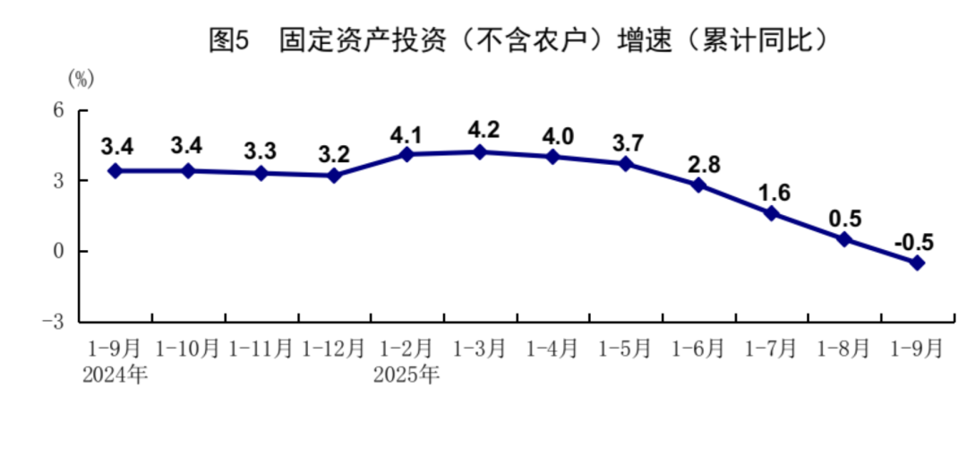 ◆ 前三季度,全国固定资产投资(不含农户)371535亿元,同比下降0.5%;扣除房地产开发投资,全国固定资产投资增长3.0%