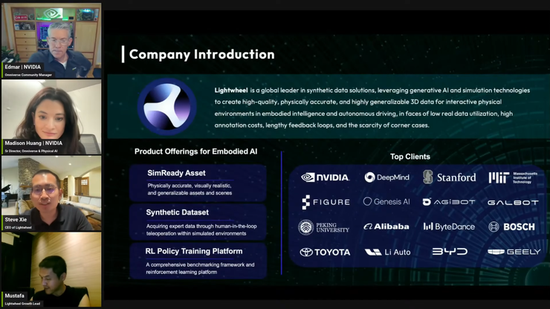 Madison Huang 在直播中也提到,很多策略评估流程能跑得这么顺利,很大程度上得益于光轮智能提供的高保真 SimReady 资产。这些资产现在已经被广泛应用在 Isaac Sim、Isaac Lab、DexBench 等项目里,成了英伟达整个物理 AI 生态的重要一环。Madison 更是表示:英伟达十分需要光轮。