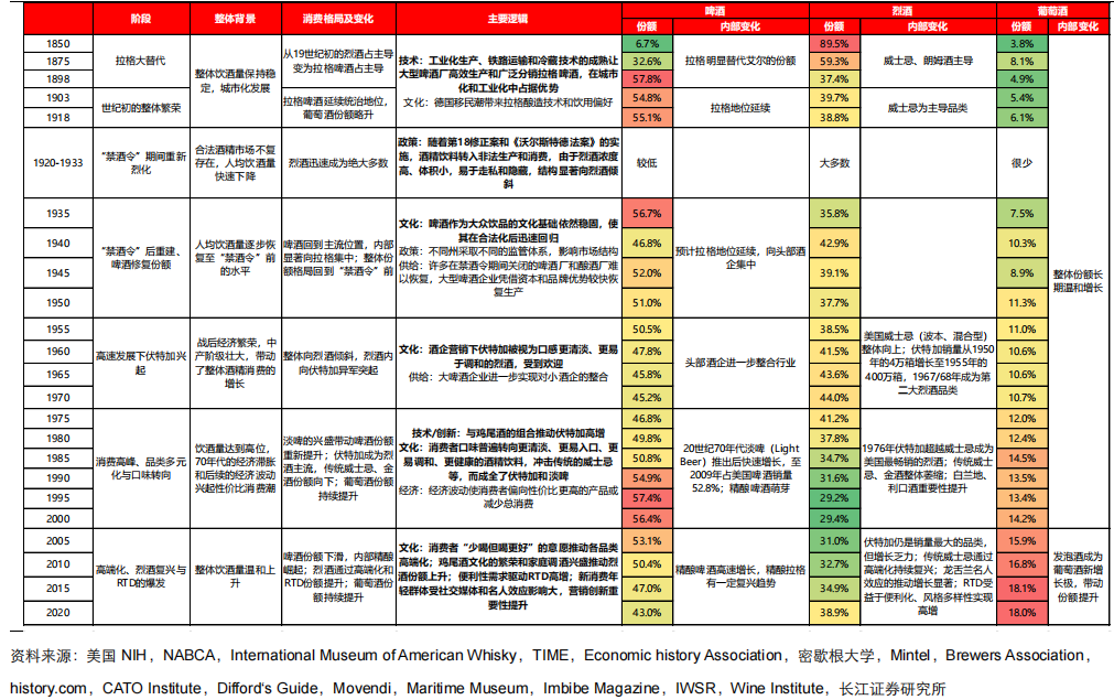 准确地说,白酒的下行跟经济发展阶段关系更大。从欧美和日本等海外市场看,在经济转型后,烈酒的消费占比都会有所下行。