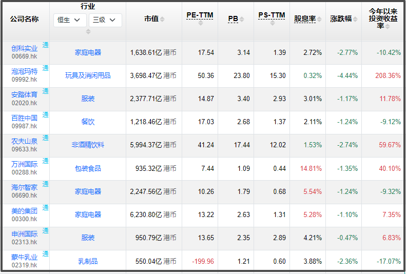 在老美的股市分类里,港股科技的阿里、京东和小米等都属于消费股。腾讯算半个消费股。事实上,在港股消费里,上述香港科技股也是其成分股。