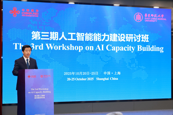 2025年10月20日,外交部人工智能事务协调员孙*出席由华东师范大学承办的第三期人工智能能力建设研讨班开班式并致辞。
