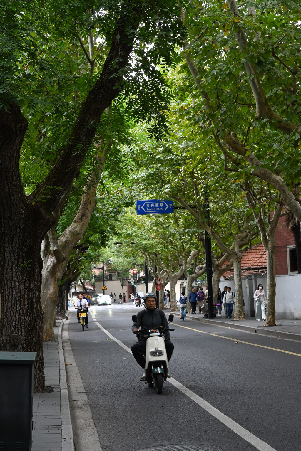 2025年10月20日,武康路,刚清理的整洁街道已经有了细小的落叶。