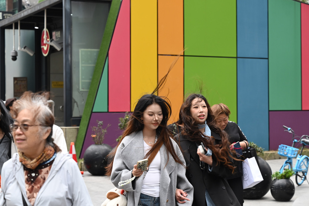 2025年10月20日,吴江路,一阵大风吹过,独留人们发型凌乱。
