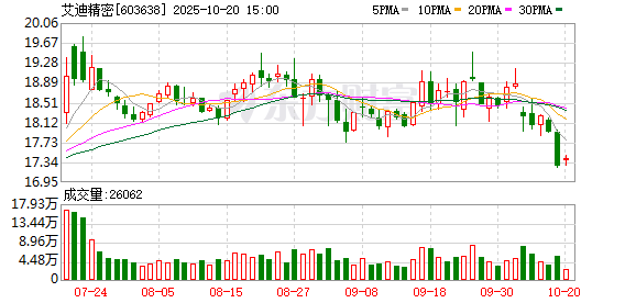 证券时报·数据宝统计显示,艾迪精密今日收盘价为17.41元,上涨0.81%,日换手率为0.31%,成交额为4531.24万元,全天主力资金净流出120.24万元,近5日该股累计下跌4.50%,近5日资金合计净流出583.31万元。