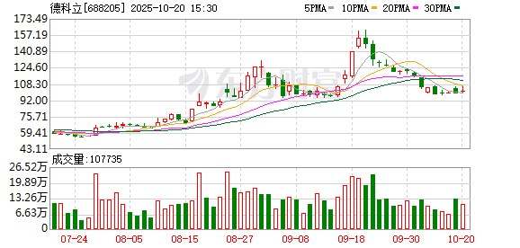 证券时报·数据宝统计显示,德科立今日收盘价为101.41元,上涨2.65%,日换手率为6.81%,成交额为11.02亿元,全天主力资金净流入8213.61万元,近5日该股累计下跌3.09%,近5日资金合计净流入2.40亿元。