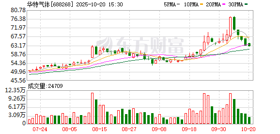 证券时报·数据宝统计显示,华特气体今日收盘价为62.80元,下跌0.29%,日换手率为2.06%,成交额为1.57亿元,全天主力资金净流出1476.63万元,近5日该股累计下跌18.63%,近5日资金合计净流出1.17亿元。