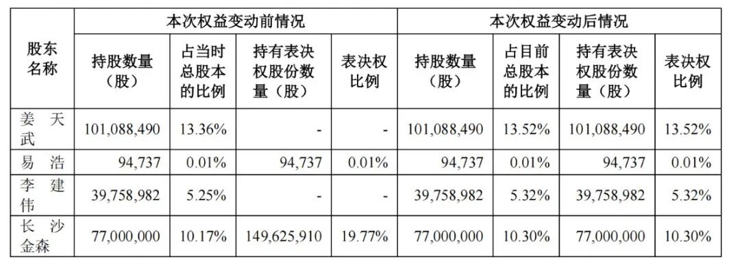 梦洁股份表示,该次权益变动事项将会导致公司控制权发生变更,长沙金森不再是公司拥有表决权的之一大股东。姜天武成为公司拥有表决权的之一大股东,姜天武与其一致行动人合计持有梦洁股份13.53%股份。