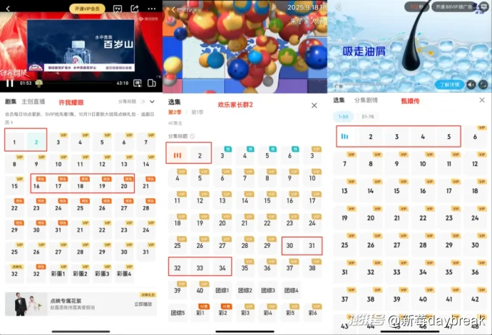 以近期热播影视剧为例,在不开通会员的情况下,腾讯视频独播剧《许我耀眼》,只能免费观看前两集和中间限免的五集,每集开始前还需观看时长超过100秒的广告;芒果TV独播剧《欢乐家长群2》,同样只能免费观看前两集和中间限免的五集,每集开始前也要看75秒广告。