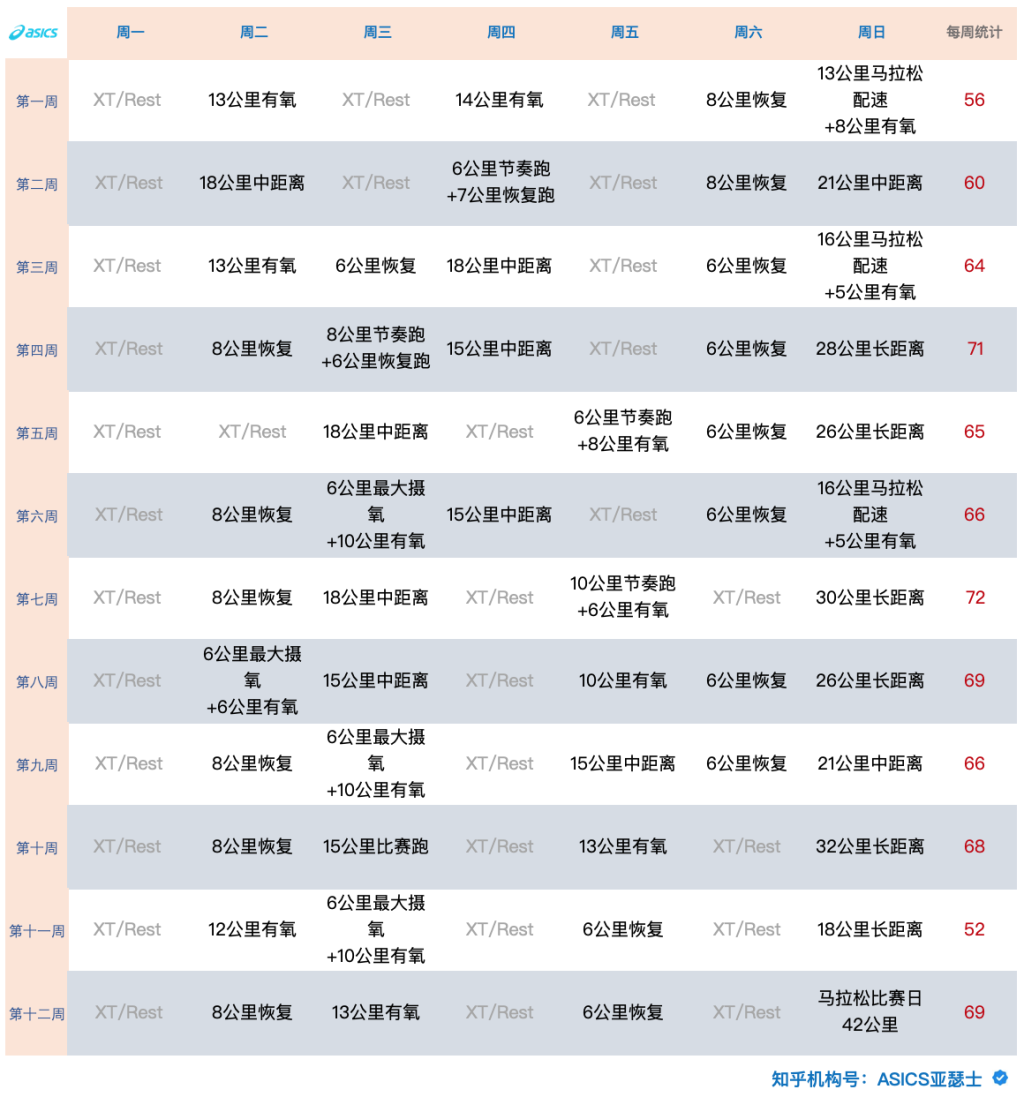 不少跑步机构都会针对不同能力的跑者制定十二周到十六周的马拉松训练计划。