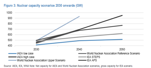 (2030年及以后的核电装机容量预测,单位:吉瓦)