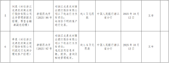 一同被罚的还有5名相关责任人,累计罚款金额为10.25万元。