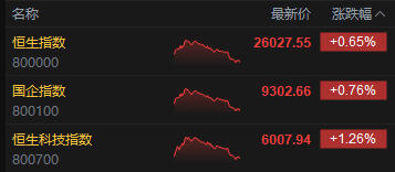 10月21日消息,港股三大指数集体上涨。截至收盘,涨0.65%,报26027.55点,涨1.26%,国企指数涨0.76%。盘面上,科网股涨多跌少,哔哩哔哩涨超8%,联想涨超2%,阿里巴巴、联想、快手涨超1%,小米跌超1%;苹果概念涨幅居前,涨超5%;芯片股走强,涨超3%;新消费概念下挫,跌超8%;黄金股普跌,紫金黄金国际跌超4%;聚水潭上市首日涨近24%。
