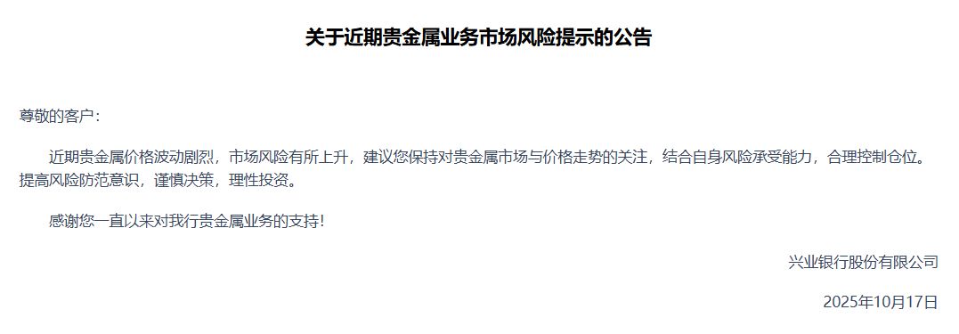 除了光大银行之外,、、等多家银行,也对近期贵金属业务市场风险发出明确的提示。