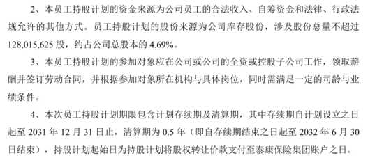 值得一提的是,本次计划是泰康保险集团、阳光保险集团时隔十年后再次实施员工持股计划。