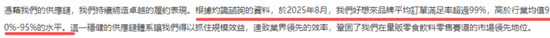 拥有覆盖面积极广的仓储 *** 与快速响应的物流:截至2025年6月30日,公司有51个常温仓储设施,总面积96万平方米,并拥有13个冷链仓库。通过协同仓储 *** 布局与门店拓展,公司可在24小时内从仓库配送至大部分门店。
