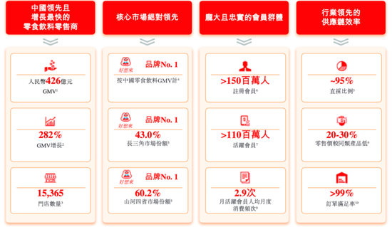 与此同时,公司主打实惠优质,将成本优势传递给消费者。据灼识咨询,公司的零售价较大卖场、超市及便利店的同类产品平均低20%-30%。