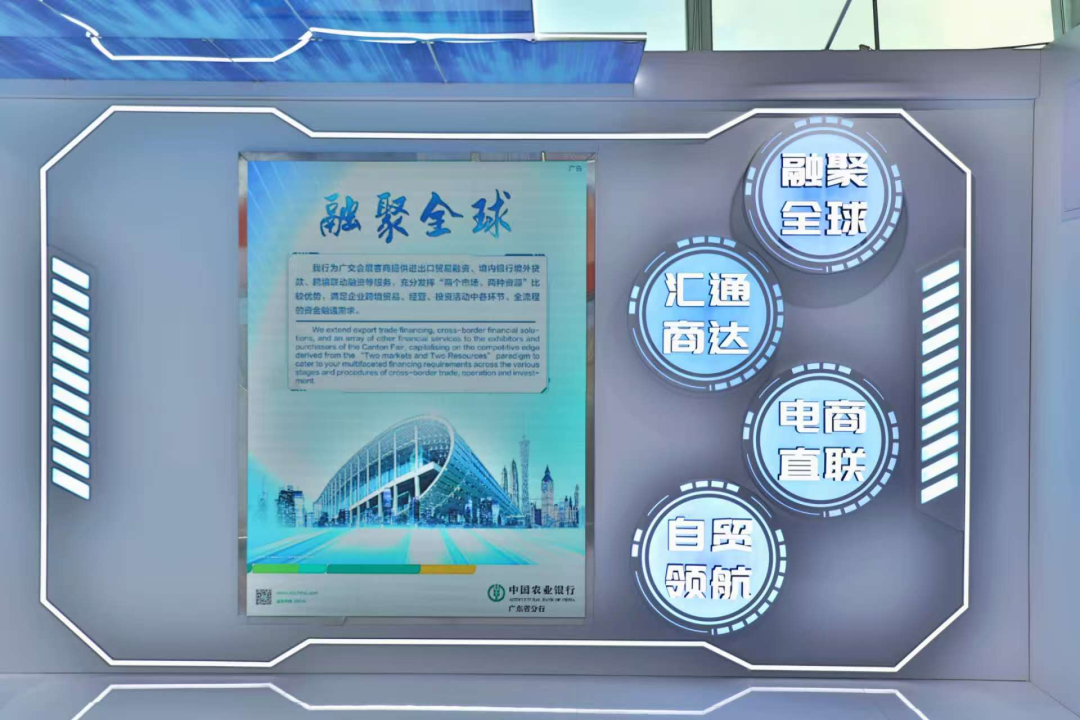 作为本届广交会战略合作伙伴,中国延续“农”情广交,融“汇”贯通的服务主题,聚焦大湾区自贸业务、便利化支付结算、多元化融资产品及智慧场景建设,全方位展现“农”情服务新气象,为海内外客商提供高效、便捷、专业的跨境金融支持。