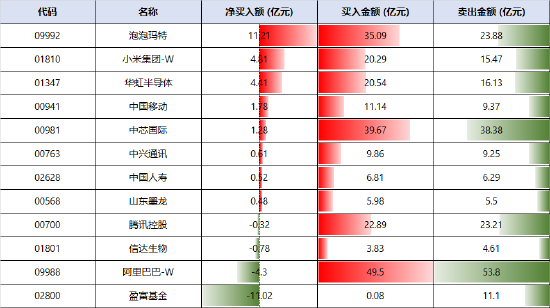 资金流向方面,南向资金单日净买入11.71亿港元。、、成为最受青睐的标的,分别获净买入11.21亿港元、4.81亿港元和4.41亿港元,盈富基金、、则遭遇不同程度净卖出。