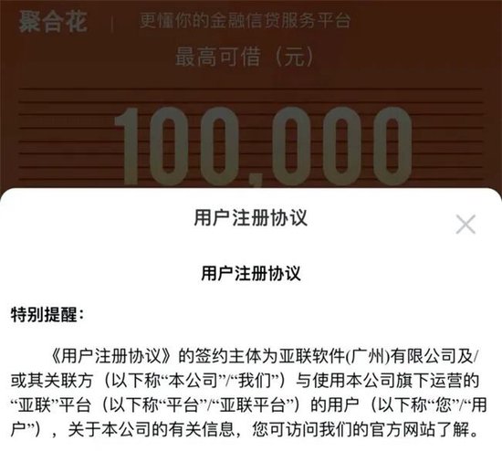 其中,“聚合花”微信公众号的认证主体为广州星光互联网 *** 有限公司,记者在该公众号点击借款窗口,链接跳转信息显示,“聚合花”的主体为亚联软件(广州)有限公司。
