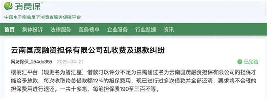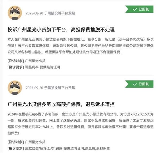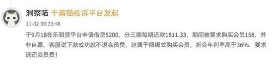 记者搜索媒体报道中提及的“樱桃汇”、“乐骐贷”两个平台,在消费保、黑猫投诉 等平台上,目前仍能看到多条消费者投诉信息。据投诉信息反映,上述平台存在额外收取担保费、会员费等情况,将借款人的综合年化利率变相推高到了24%以上。