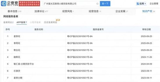 此外,企查查信息显示,今年9月底,星光小贷新备案了三个贷款App,分别是“聚合花”“享用花”“星享花”。
