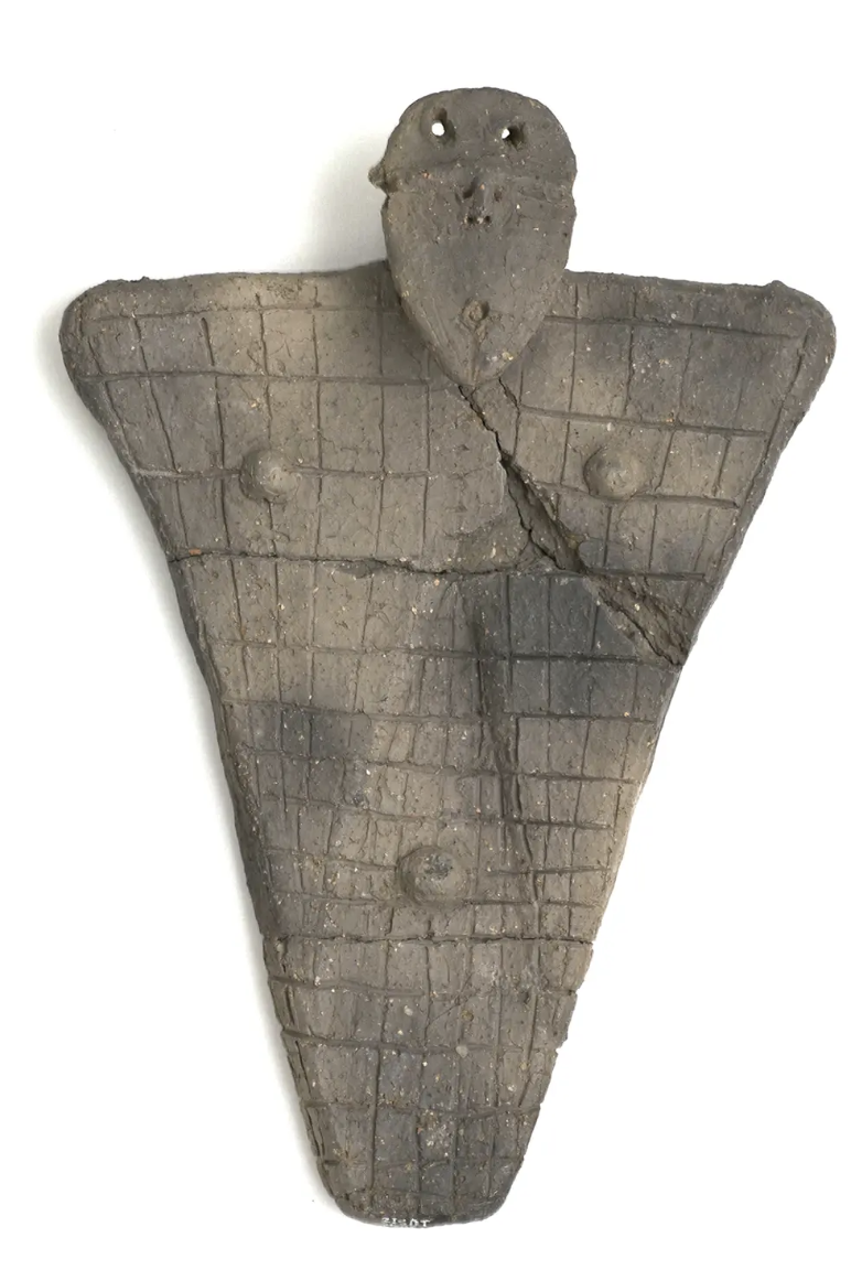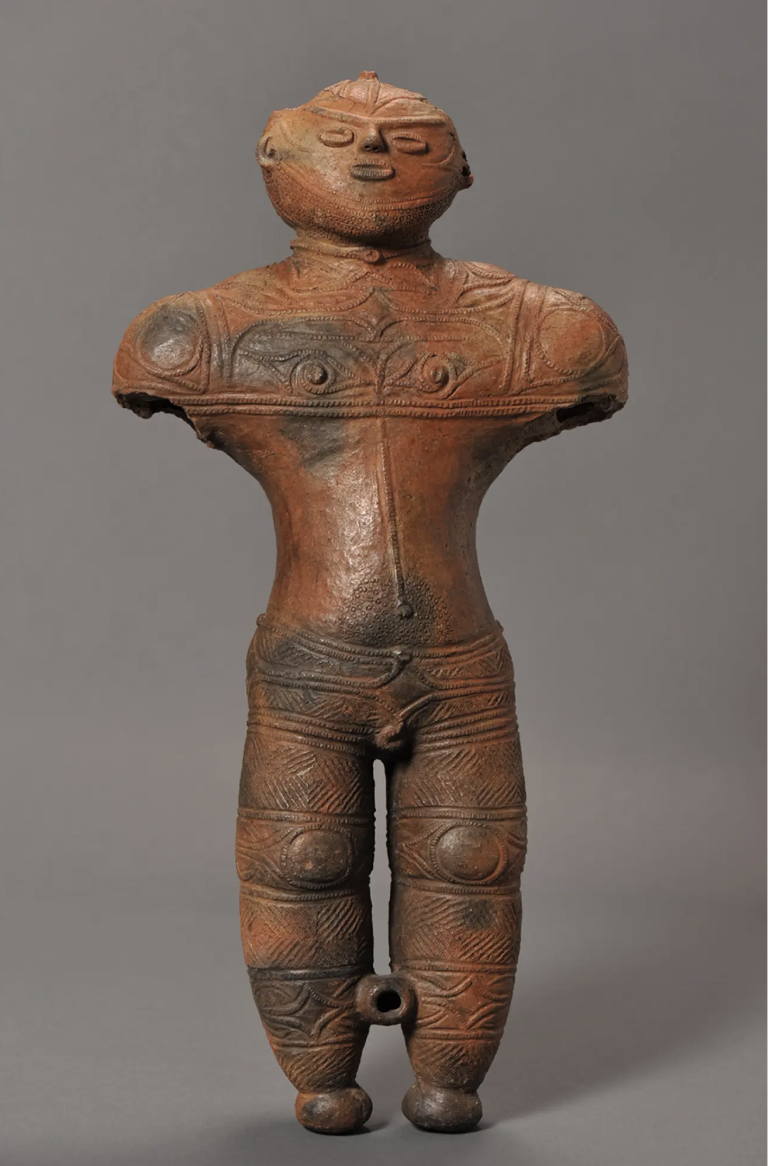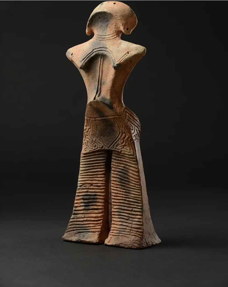 本次展览的核心亮点是两件日本国宝级土偶的特别展出—— “绳文女神”与 “中空土偶”。土偶是绳文时代最独特、更具代表性的精神文化遗产,其中近九成塑造为女性形象。考古研究普遍认为,土偶是祈祷母子平安、子孙繁衍、渔猎丰收的祭祀法器。许多土偶在仪式结束后会被故意损坏,可能蕴含着将愿望奉献给神灵或为生者祛除灾厄的意味。