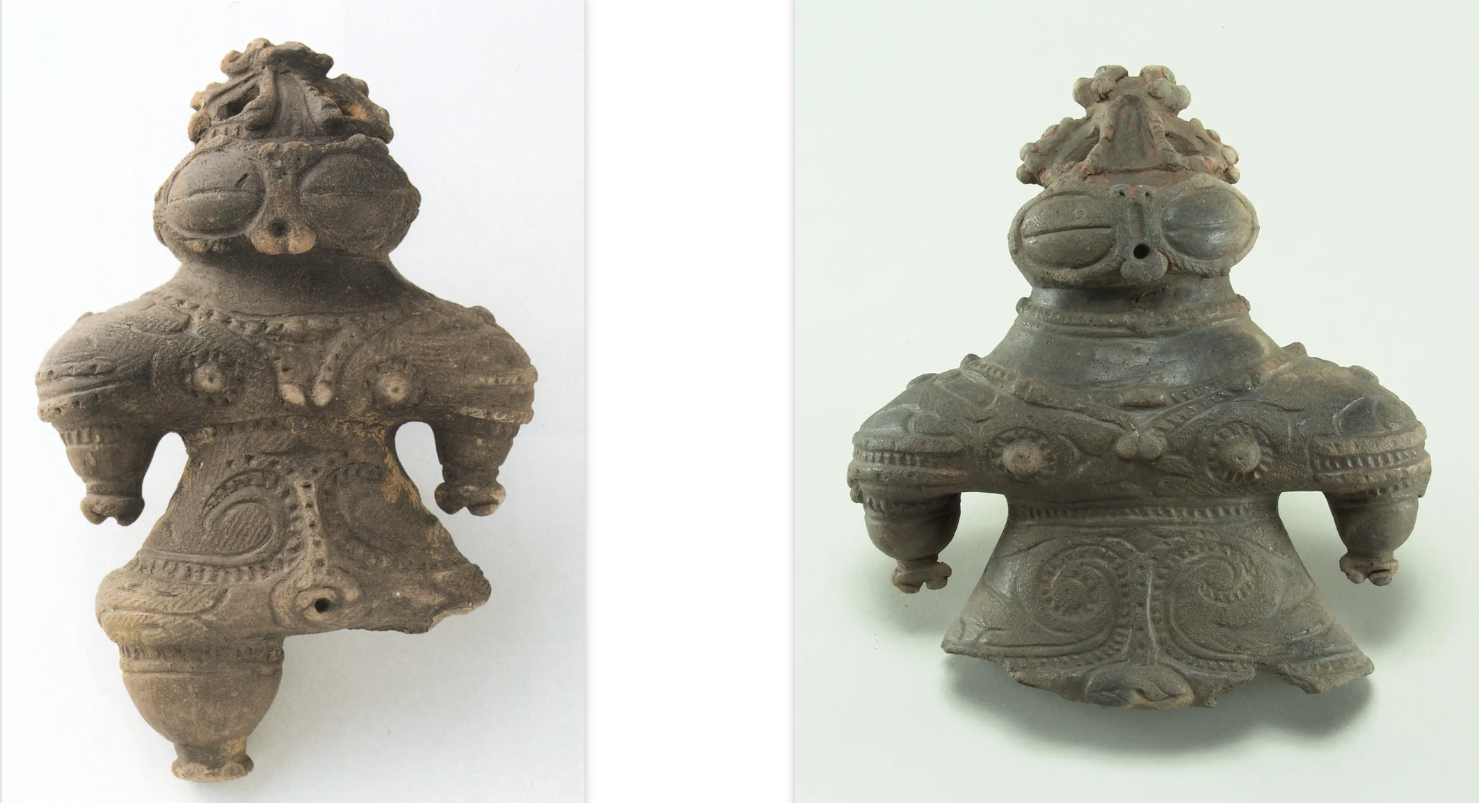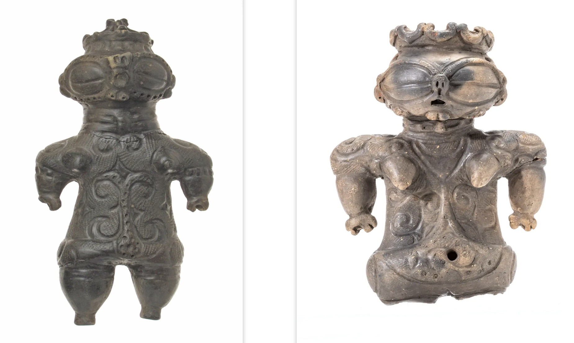 左:秋田县星宫遗址出土《遮光器土偶》(大仙市藏)右:秋田县藤株遗址出土《遮光器土偶》(东北大学大学院文学研究科藏)