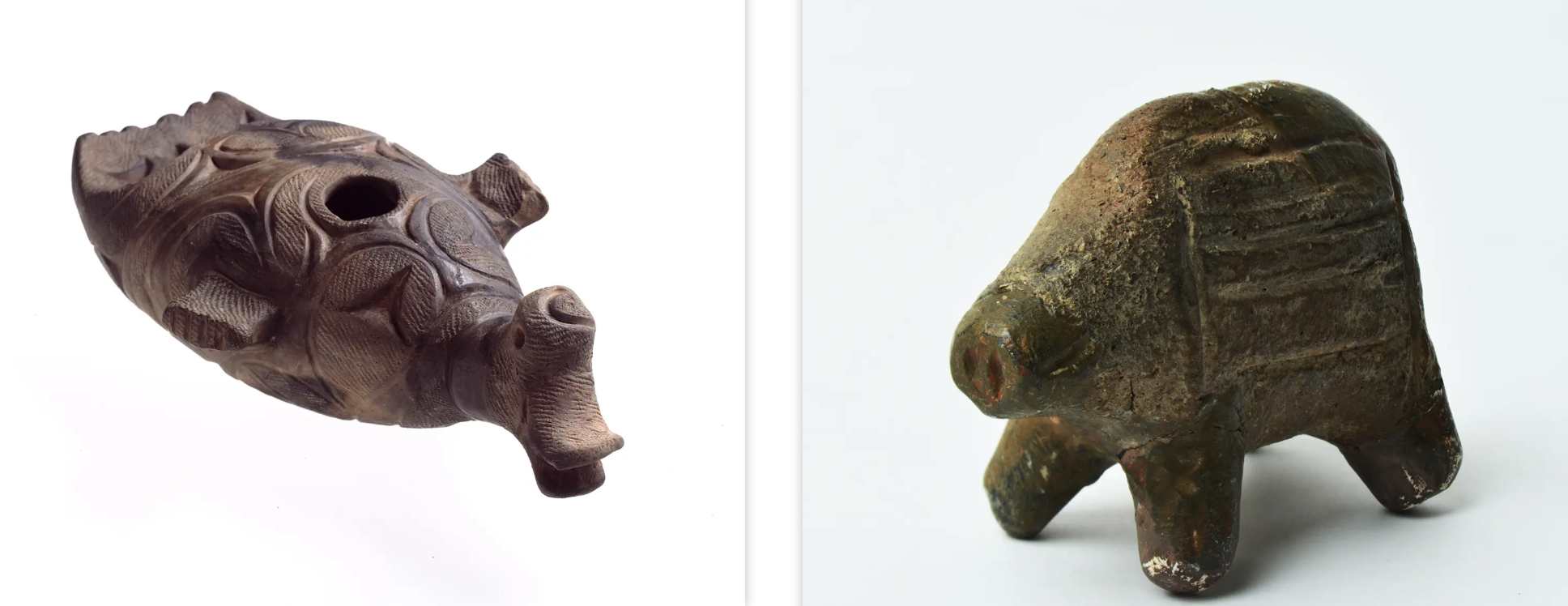 左 :动物形土制品(千岁市教育委员会藏)右:动物形土制品(市立函馆博物馆藏)
