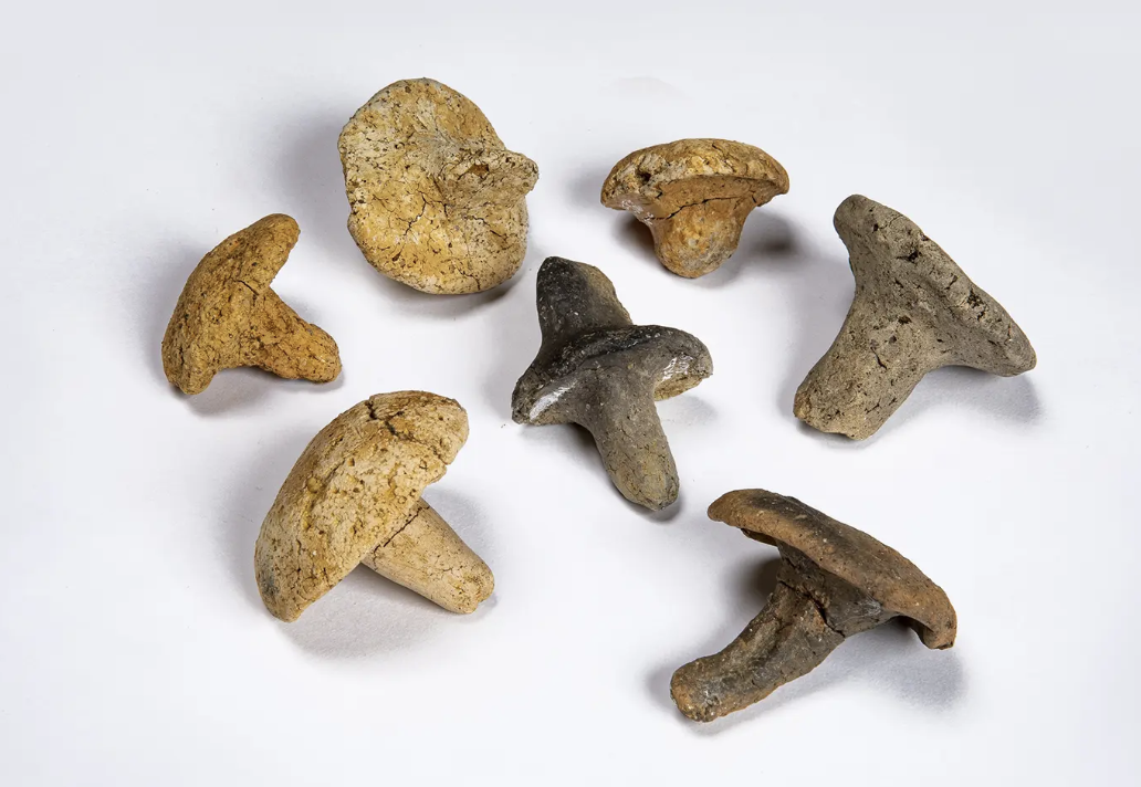 第三单元“绳文人的一年” 则通过实物资料、模型、标本和影像等多种媒介,重现绳文人与自然共生的可持续生活方式, 比如渔捞具、蘑菇形土制品。