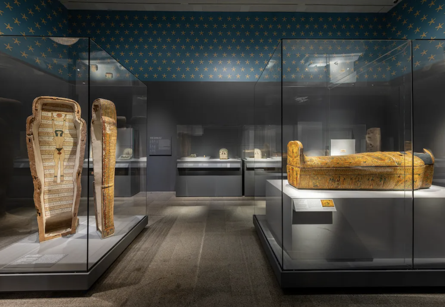 展览汇集500余件精选文物,包括十余具彩绘木乃伊棺椁、动物木乃伊、黄金珠宝及首次公开的手稿,部分展品与卢浮宫借展文物“重聚”。展览以十位跨国跨时代学者的视角,串联古埃及人、 *** 旅者、欧洲探险家到现代考古学家的“埃及热”,揭示5000年文明如何被不断再发现。沙漠气候封存了木材、颜料与织物,使古埃及的生活、信仰与艺术细节得以罕见地保存;从俄罗斯套娃式棺椁到象形文字,从圣经记载到流行符号,展览追问“埃及魔力”为何历久弥新。展览最后几间展厅展示了包括猫和鳄鱼在内的动物木乃伊,以及大量彩绘木乃伊棺椁。一段视频中,不同研究者探讨了为什么埃及如此吸引人,以及古埃及人对灵性、生命与死亡的深刻人性表达。