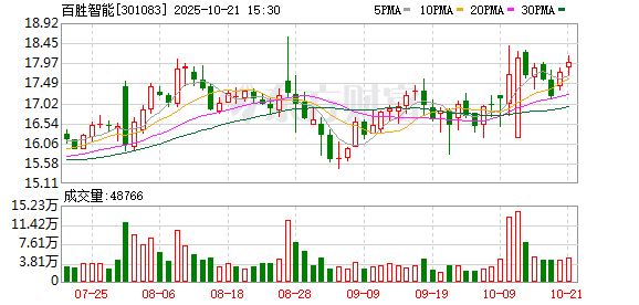 证券时报·数据宝统计,截至发稿,百胜智能收盘价为17.99元,上涨1.41%,本期筹码集中以来股价累计上涨1.58%。具体到各交易日,4次上涨,3次下跌。
