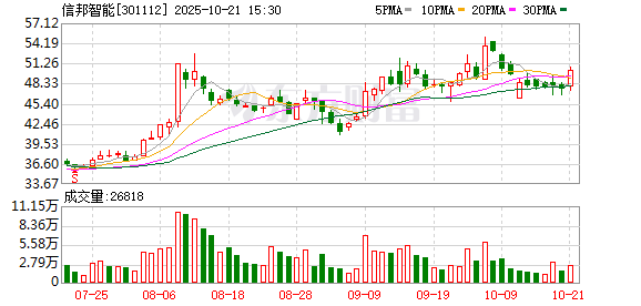证券时报·数据宝统计,截至发稿,信邦智能收盘价为50.30元,上涨5.98%,本期筹码集中以来股价累计上涨1.29%。具体到各交易日,3次上涨,4次下跌。