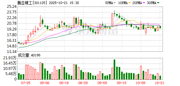 证券时报·数据宝统计,截至发稿,腾亚精工收盘价为19.51元,下跌1.46%,本期筹码集中以来股价累计上涨1.56%。具体到各交易日,4次上涨,3次下跌。