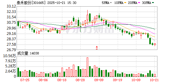 证券时报·数据宝统计,截至发稿,泰禾股份收盘价为27.72元,上涨0.76%,本期筹码集中以来股价累计下跌5.87%。具体到各交易日,2次上涨,5次下跌。