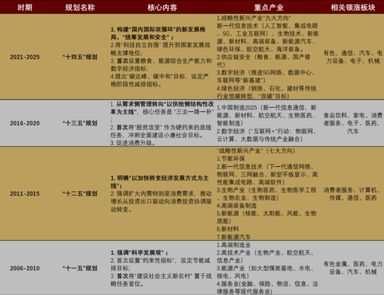 图表14:“五年规划”核心内容和重点行业