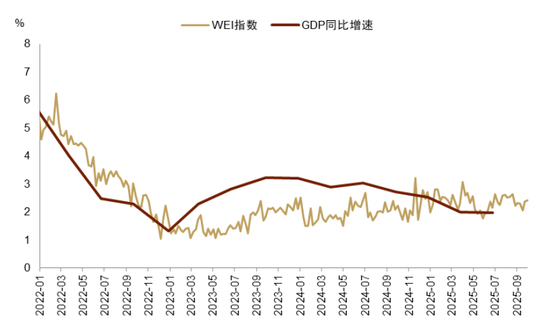 图表1:WEI显示美国3季度环比年化增速在3.4%-4.2%之间