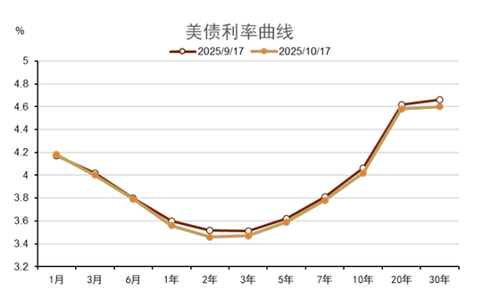 图表8:9月以来美债利率曲线变化不大