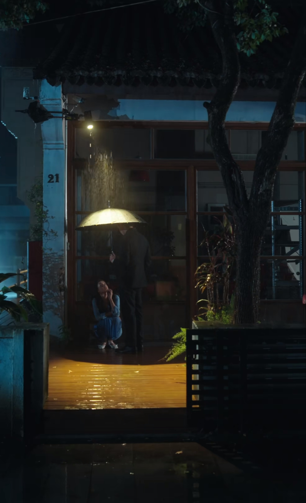 例如剧集开头的二人,分处在阴影两端,交代了二人婚约并非出于本心、只能在暗处进行契约交易;彼时衔接的多个手部、脚部动作的特写镜头,在不多费人物口舌的同时有效地交代了二人的性格特点。