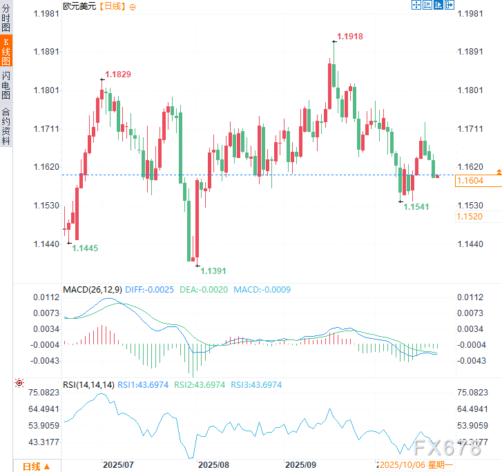(欧元兑美元日线图,来源:易汇通)北京时间9:30,欧元兑美元交投于1.1602/03。