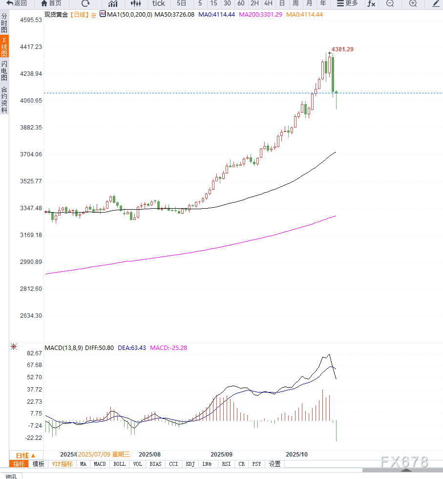 黄金周三亚洲时段延续跌势,盘中更低触及约4,000美元/盎司,此前在周二出现超过6%的单日大幅回落,为十余年来更大日内跌幅。