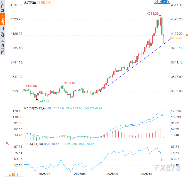 周二布斯的言论发表之际,黄金价格遭遇五年来更大单日跌幅之一,从前一交易日每盎司4381.29美元历史高点回落逾5%,至4125美元附近。她认为这并非市场对贵金属的根本性否定,而是由于全市场“争抢现金”导致的被迫抛售迹象,这一动态上一次出现在疫情爆发初期的严重市场混乱时期。