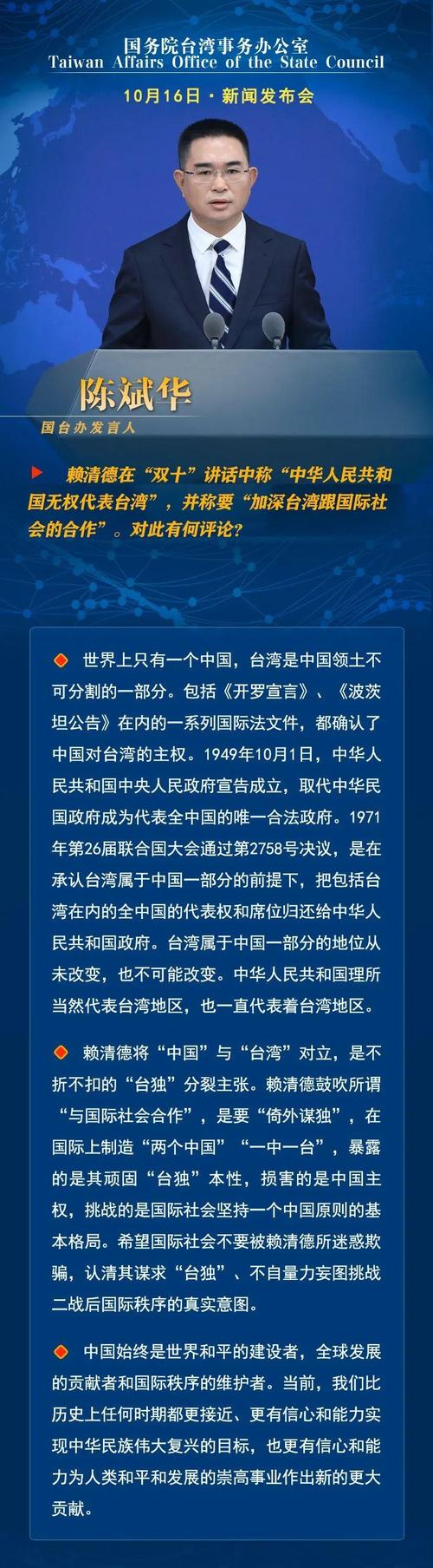 10 月 22 日,国务院台办举行例行新闻发布会。总台记者提问:台媒报道,美国军工新创公司创办人拉奇近日称,大陆有可能于 2027 年对台出手,他反对美国介入战争,应把台湾打造成 " 超多刺豪猪 "。请问发言人对此有何评论?