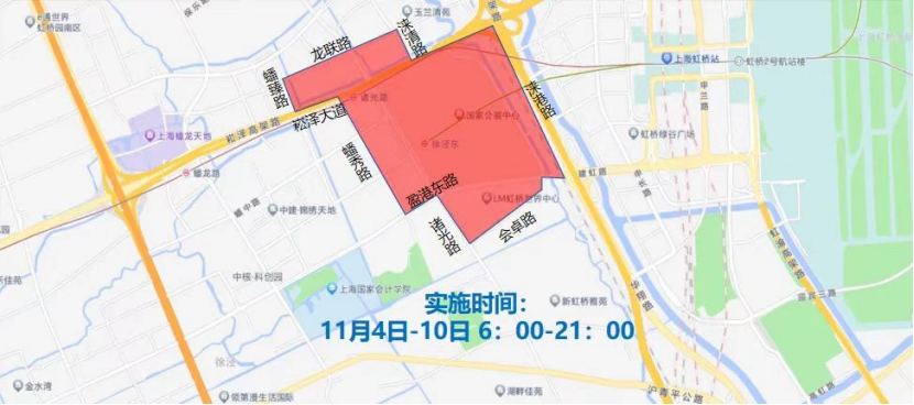 12. 在去年进博会期间非机动车管控措施的基础上,取消盈港东路(诸光路至蟠秀路)段非机动车限行措施。
