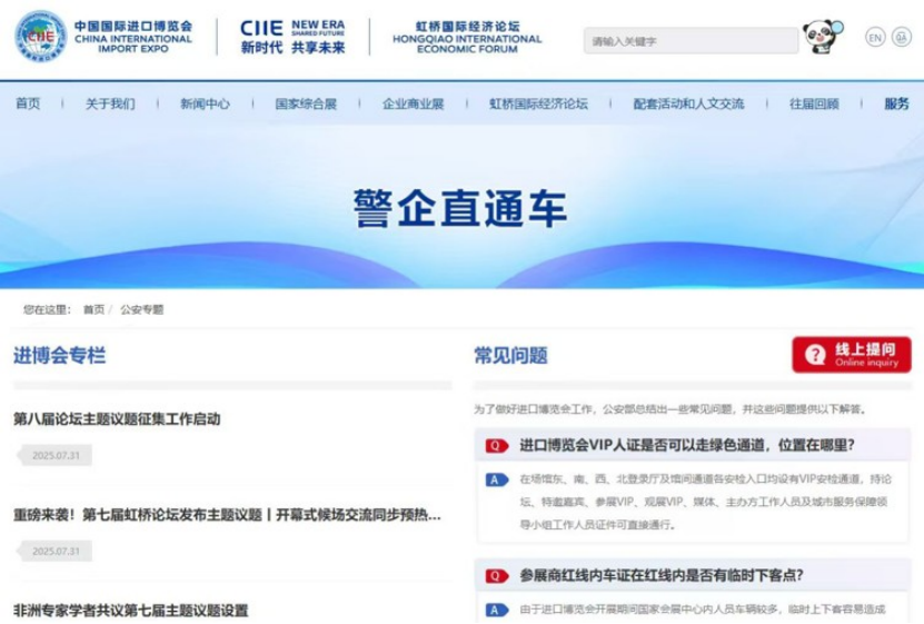 上海公安在中国国际进口博览会门户网站主页醒目位置设置“警企直通车”专栏飘窗。 上海市公安局 供图