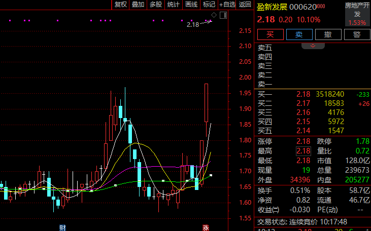 盘初,房地产板块逆势拉升,(000620)3连板,、、、、跟涨。